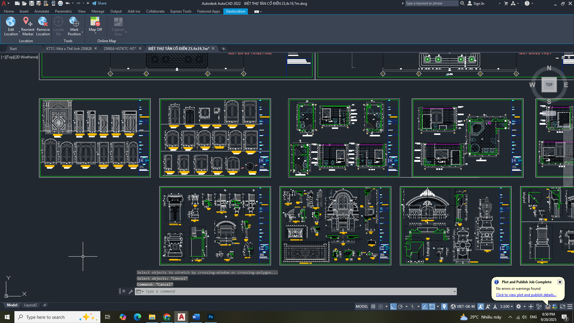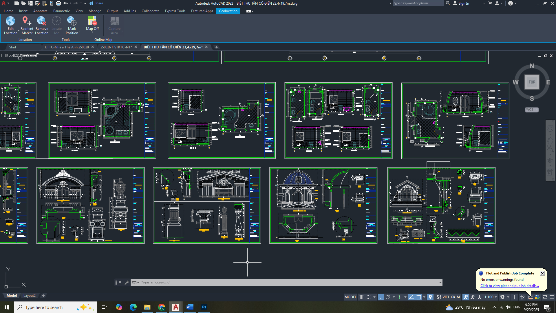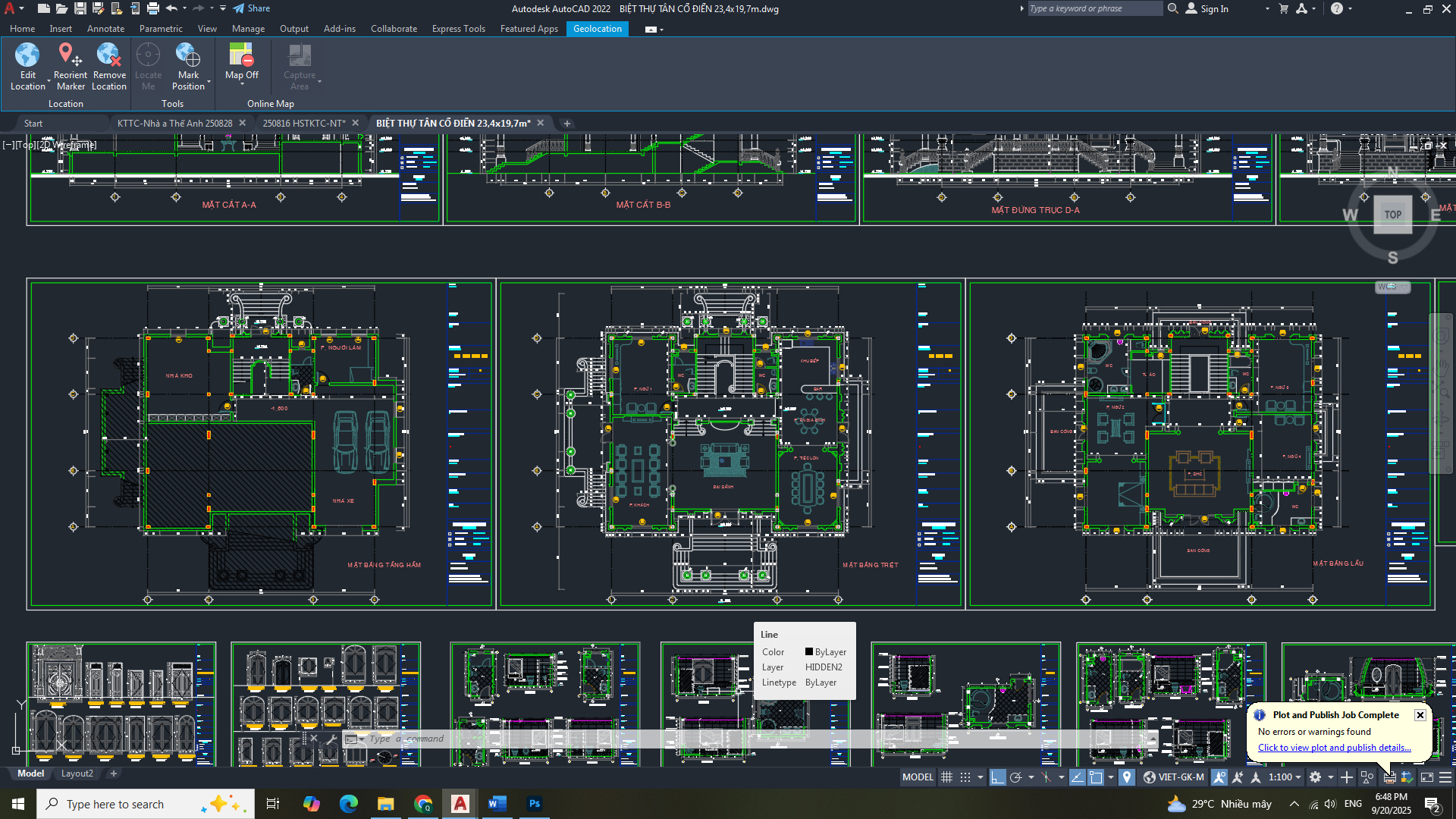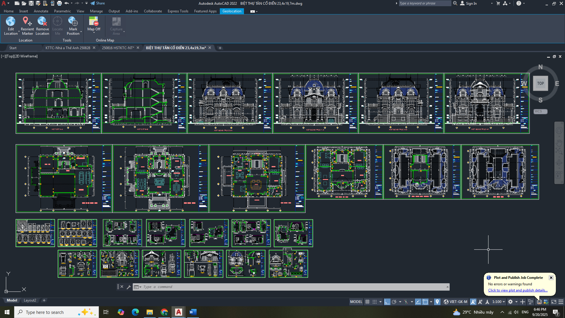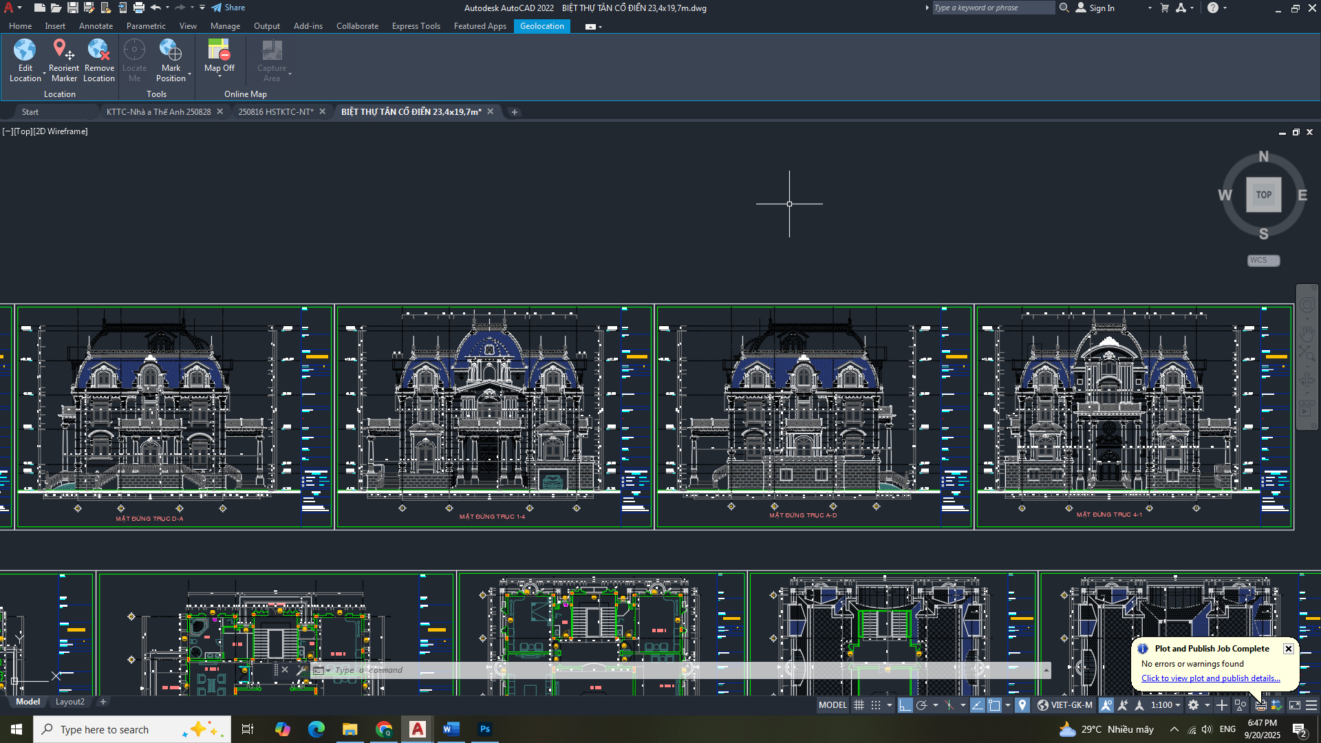 Hồ sơ thiết kế bản vẽ thi công: - Hạng mục: kiến trúc - Công trình: Biệt thự tần cổ điển 23,4 x 19,7m