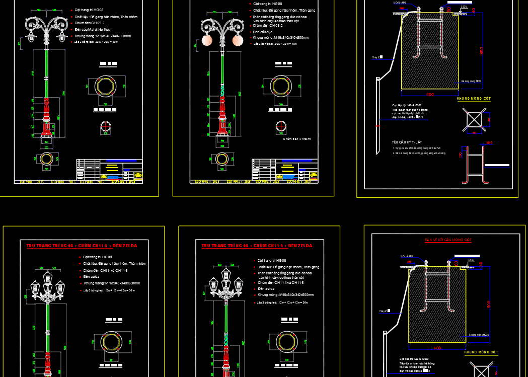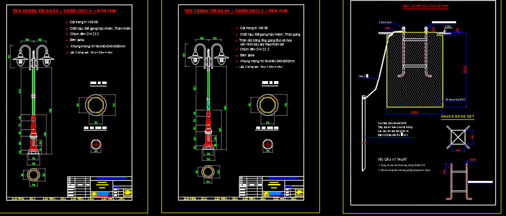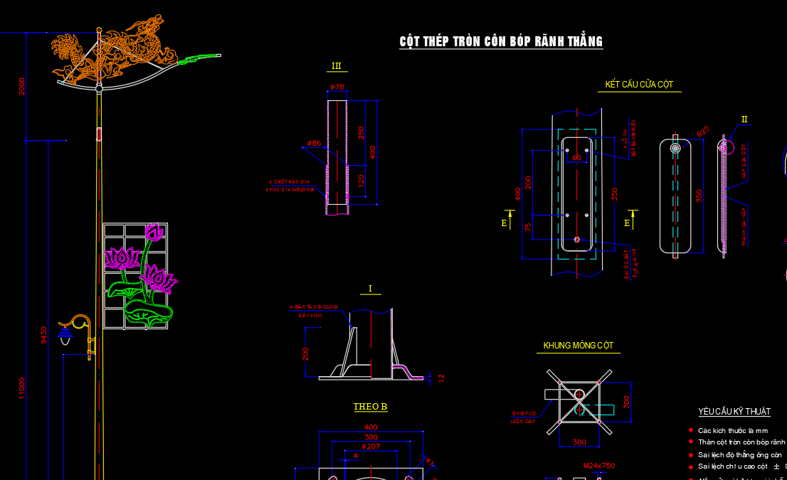 - Bản vẽ trụ thép đa giác cao 14m, 17m :
